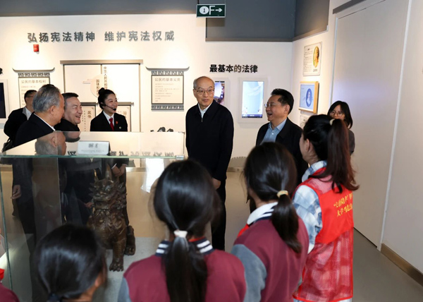 调研组在湖州市南浔区未成年人道德法治体验馆调研。